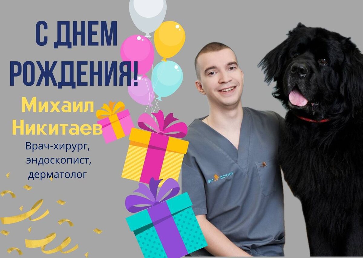 🎉 Сегодня ✅ ✅✅✅✅ ✅✅✅✅✅✅✅✅ поздравляем Михаила Никитаева! 🥳 Михаил Сергеевич работает в клинике ветдоктор с 2016 года. Хотим пожелать крепкого здоровья, семейного благополучия, успехов в работе и достижения всех целей! 🎁 Присоединяйтесь 👍🏻