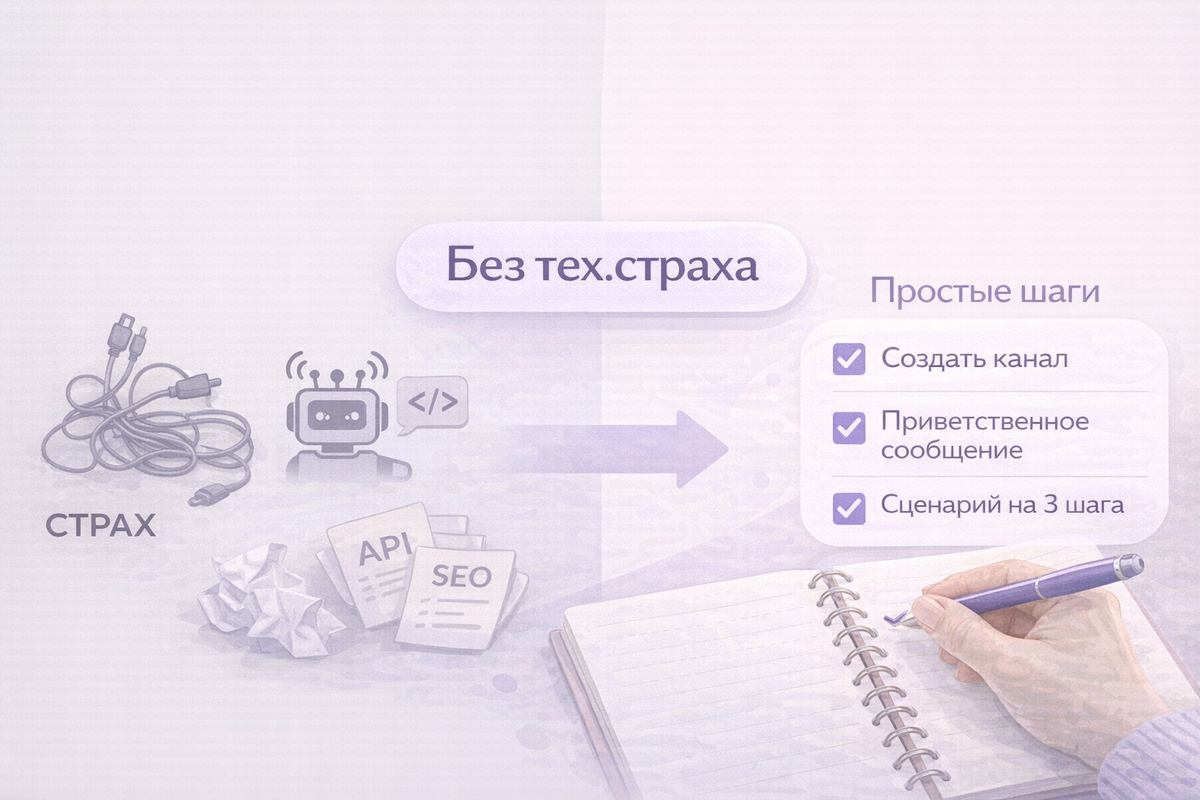 Подписывайся на мой телеграм-канал - там подробно про привлечение клиентов и партрнеров через Телеграм Многие сетевики честно говорят: Telegram им интересен, но страшно начинать. Не из-за контента и не из-за общения. Пугают слова «бот», «воронка», «настройки». Кажется, что без технических знаний лучше даже не лезть — всё равно не разберёшься. На практике всё выглядит иначе. Большинство рабочих стартов в Telegram начинаются без ботов и без сложных - схем. Сначала — простая структура, которую реально внедрить. И только потом, когда появляется повторяемость и понимание, — автоматизация. Есть три вещи, которые часто путают: Это основа, которая работает даже у тех, кто «не дружит с настройками». Одна тема, одна аудитория, одна задача.