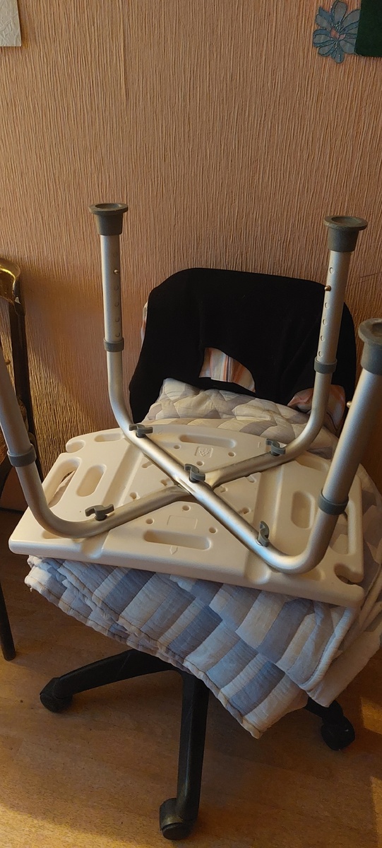Всем привет! У нас дует и дует. Ну, хорошо, что не просто северный ветер и не прямо в три окна квартиры, а с запада и на восток вдоль дома, так что у нас довольно тепло. Ну и этаж наш все-таки средненький, четвертый, поэтому не так сильно и на площадке холодает у нас по ночам. Но все-таки февраль - это всегда буран и ветер, и убежавшее тепло. А у нас дома небольшое ЧП пенсионерского разлива. Разъехались=подгибаются ножки у вот этого, с первого фото к статье, стульчика ТИТАН! А как мы были ему рады в прошлом году, когда выписывали его сестре на маркетплейсе!!! И, кстати, он и вел себя в прошлом году нормально. Мы ставили его в ванную, как и нужно было в его рекламе, сестра там вставляла шланг с душем в прорезь сидения и спокойно так сидела с комфортом, и принимала душ. Но. На рекламе-то этого Титана старушка была ооочень даже балетных размеров, как я помню. Стройняшка такая красивенькая там была рекламная в купальничке и для нее, пушиночки, такой стульчик был САМОЕ ОНО! А у сестры вес