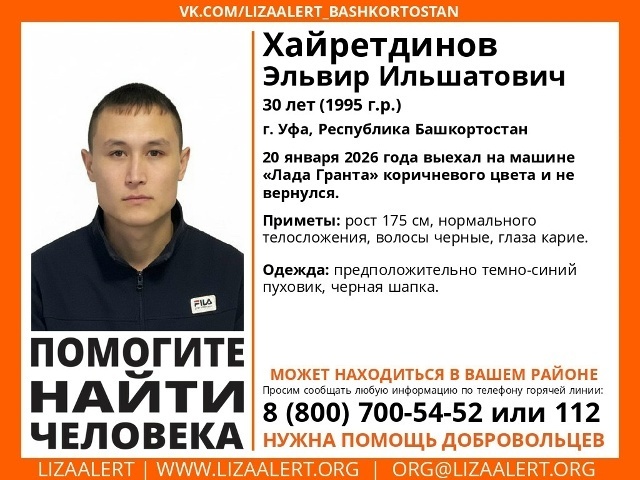 В Башкирии ищут 30-летнего Эльвира Хайретдинова
