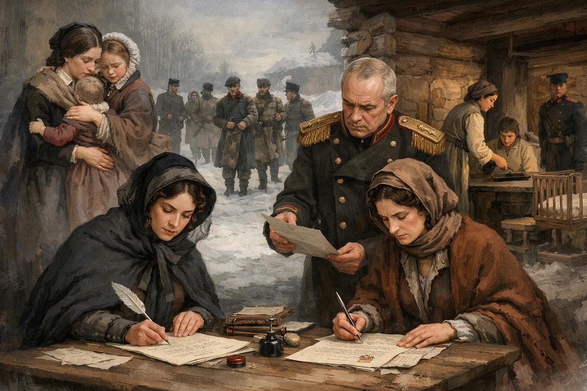 Когда мы говорим о «женах декабристов», чаще всего имеем в виду устойчивый культурный образ – самоотверженных женщин, добровольно разделивших судьбу своих осужденных мужей. Однако документы и исследования показывают: за этим образом стоит строго регламентированная правовая и социальная реальность, которая поистине далека от романтических обобщений. После восстания 14 декабря 1825 года более ста его участников были приговорены к каторге или пожизненной ссылке. В 1826 году власти зафиксировали порядок, по которому жёны осуждённых могли отправиться вслед за ними в Сибирь. Это решение не было автоматическим. Каждая женщина должна была подать прошение и подписать документ, в котором подтверждала, что осознает все последствия своего выбора. Эти последствия были подробно прописаны. Согласно архивным материалам, женщина, следовавшая за мужем-декабристом, лишалась дворянских прав, права владеть имуществом и наследовать его. Дети, рожденные в ссылке, юридически приравнивались к крестьянам, факти