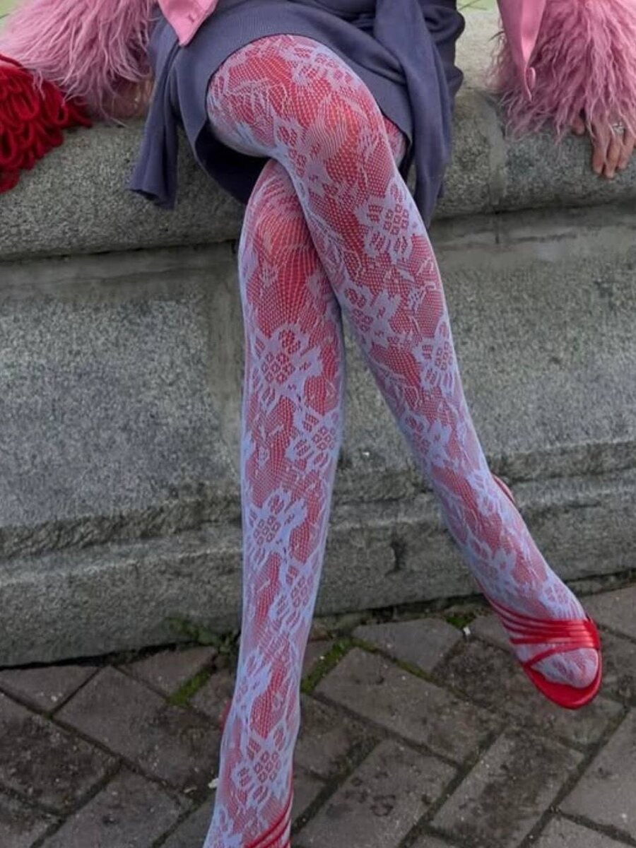 Самый популярный стилистический прием прямо сейчас — миксовать ажурные колготки с плотными