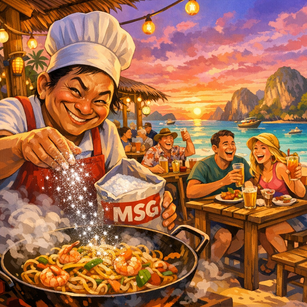 Приветствую, друзья! Вместе с влажным тропическим воздухом, ароматом специй и дымком от уличных грилей в Таиланде туристы часто «вдыхают» одну распространённую страшилку: будто бы всю местную еду щедро сдабривают глутаматом натрия. Звучит апокалиптично: «Здесь всё на химии!» Но стоит ли паниковать? Если отбросить пугающую маркировку «Е621», окажется, что это просто соль глутаминовой кислоты, одной из самых распространённых аминокислот в природе. Именно она дарит тот самый глубокий, «бульонный» вкус умами — пятое базовое вкусовое ощущение. Важный нюанс: глутамат не придумали в лаборатории. Он в изобилии содержится в пармезане, спелых томатах, соевом соусе и грибах. Когда вы наслаждаетесь насыщенным вкусом, скорее всего, вы чувствуете именно природный глутамат. Да, в Таиланде глутамат натрия — известный и легальный ингредиент. Его называют «фонг чу рот» (ผงชูรส) — «порошок, усиливающий вкус». Вы увидите его на полках супермаркетов, а иногда и в небольших контейнерах рядом с солью и перце