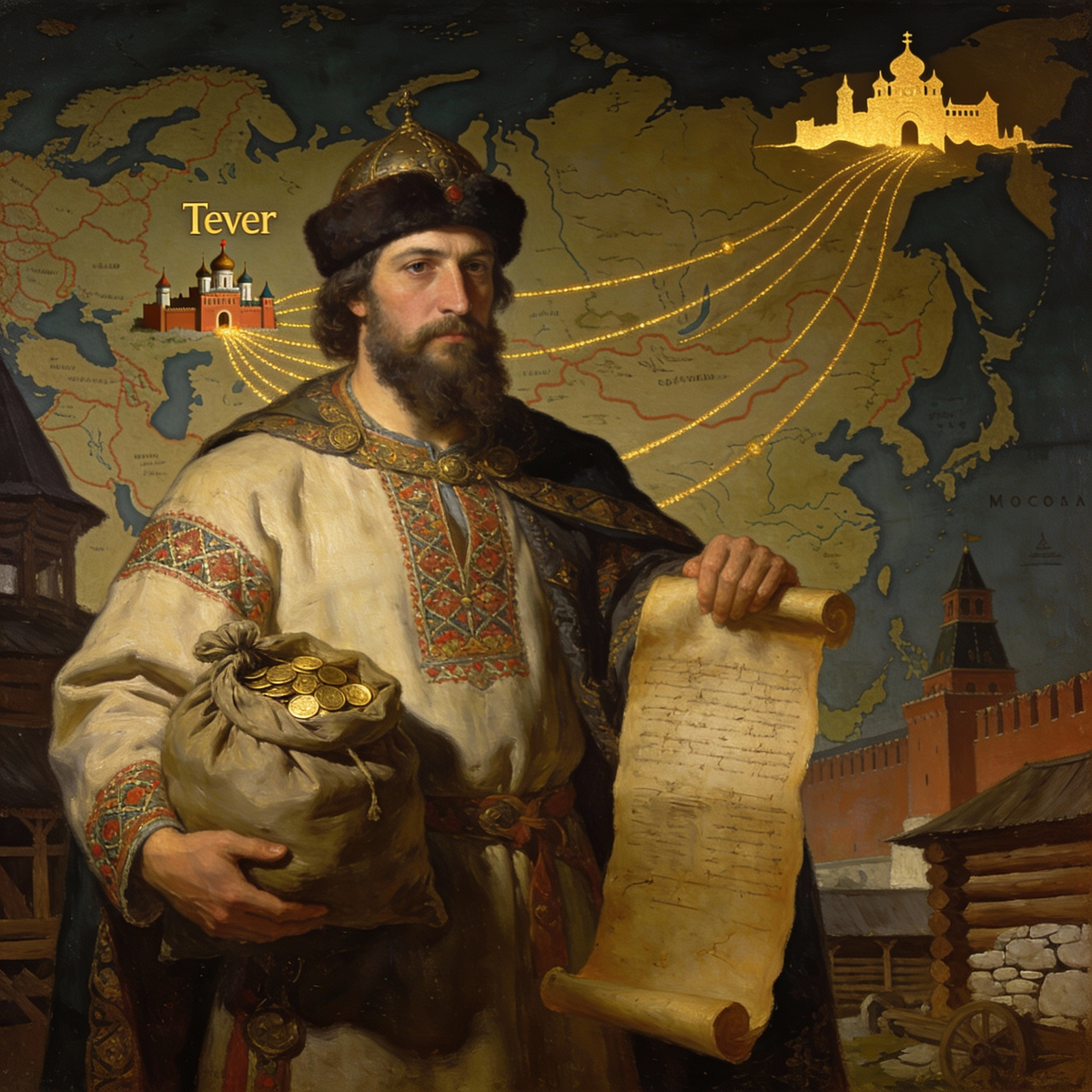 Во второй половине XIII – XIV вв. города-государства Северо-Восточной Руси продолжали своё существование, несмотря на ордынское влияние. Среди них постепенно возвысились Тверь, Москва и Нижний Новгород. Особое внимание историков традиционно привлекает феномен усиления Московского княжества, начало которого часто связывают с эпохой Ивана Калиты. Одним из ключевых инструментов расширения московского влияния стали так называемые «купли» Калиты – приобретение прав на сбор дани с определённых территорий. В завещании великого князя Дмитрия Донского 1389 г. упоминаются «купли деда» – Галич, Белоозеро и Углич, которые он передаёт сыновьям. Историография долгое время трактовала эти приобретения как присоединение земель или политический миф. Однако, как показал С. М. Каштанов, в первой половине XIV в. «купля» означала не столько приобретение территории, сколько право посылки данщиков и таможенников в центр «купленного» княжества. Это была своеобразная откупная система, при которой московский кн