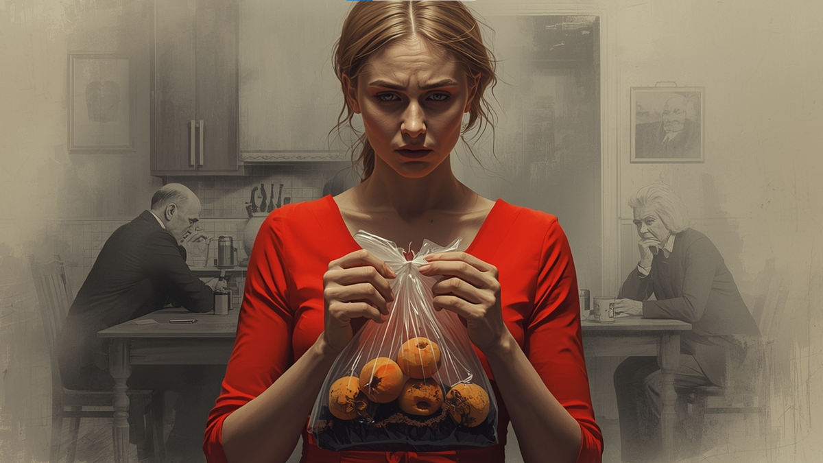 Пакет пролежал на балконе сутки. Ольга не могла заставить себя к нему прикоснуться. Каждый раз, проходя мимо балконной двери, она видела его – серый, мятый, с тёмными пятнами у дна, где протекал абрикосовый сок. Запах уже пропитал балкон, просачивался в комнату.