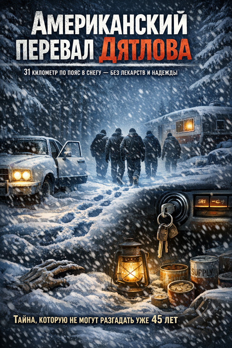 Ночь. Лес Плумас. Белый седан замер на обочине глухой горной дороги. Пятеро друзей бросили работающий автомобиль и добровольно ушли в снежную бурю. Впереди их ждал заброшенный трейлер, запас еды на год и тайна, которую следствие не может разгадать уже почти пятьдесят лет. Ключи в замке зажигания стали немым свидетелем их последнего, рокового выбора. Зима 1978 года в Северной Калифорнии выдалась на редкость капризной. В ту пятницу 24 февраля 1978 года воздух в студенческом городке Чико был пропитан предвкушением весны и гулким эхом недавнего триумфа. Пятеро друзей только что посмотрели матч своей любимой баскетбольной команды. Джек Мадруга, тридцатилетний владелец белого Mercury Montego, уверенно вывел машину на шоссе, планируя оказаться дома в Юба-Сити еще до полуночи. Компания заехала в бакалею Behr’s, чтобы купить закуски: молоко, чипсы и лимонные пирожные. Это были обычные покупки людей, которые собирались провести вечер за спокойной беседой в дороге. Однако вместо того чтобы поверн
