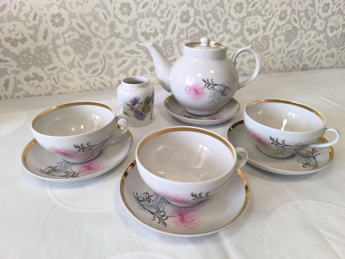 Сегодня в сервировке участвуют дулевские чайные пары с хризантемами, на форме "шпиль".