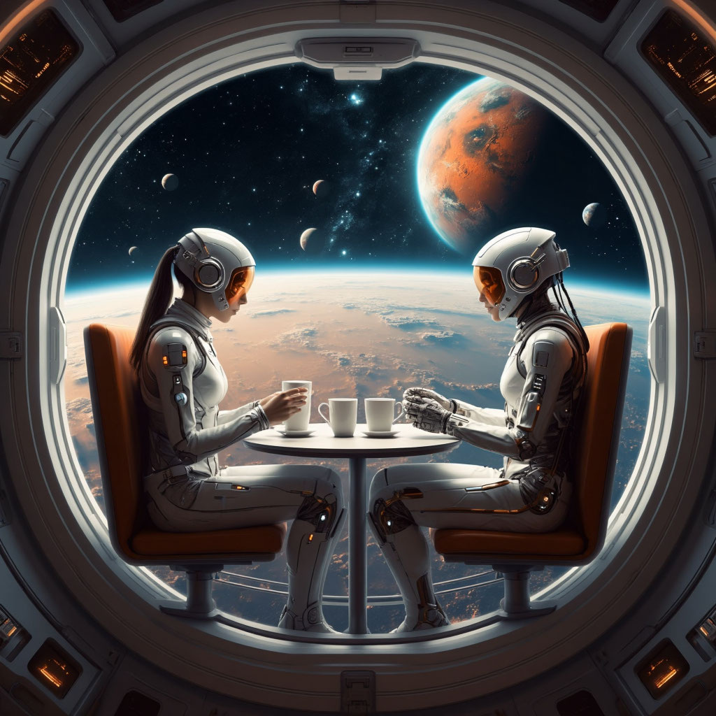 —(Пилот) До Марса осталось 100500 километров. Вы можете отстегнуть ультразащитные ремни, но просьба оставаться в защищённом от радиации месте космического корабля.