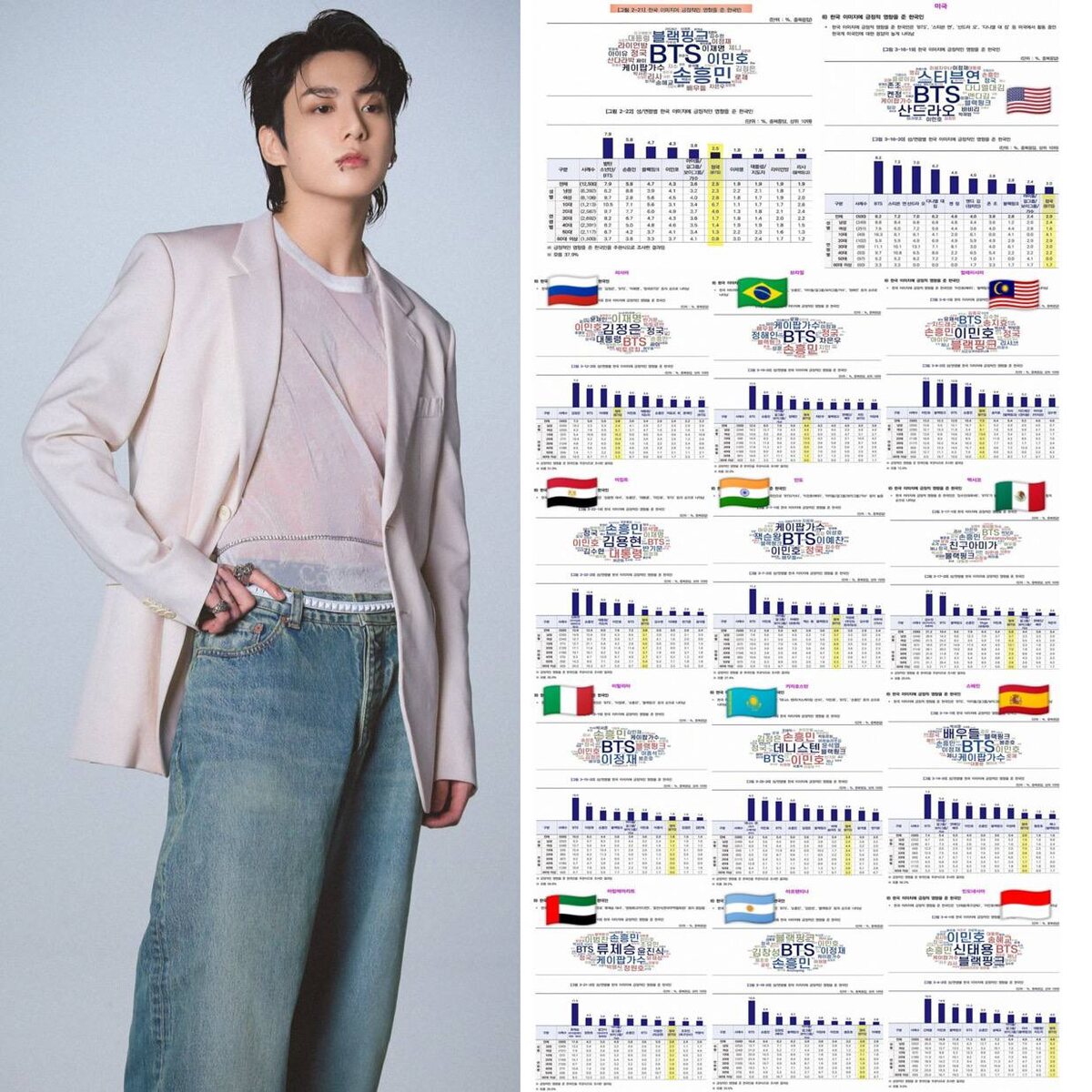 🍒 Чонгук вошёл в топ-10 в 13 из 25 стран, участвовавших в Исследовании Национального Имиджа Кореи, проведенном Министерством Культуры