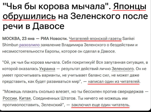 Ну, после восхищённых болгар и прочих румынов это уже не удивляет. Можно теперь злых японцев приписать. А знаете, в чём самый настоящий прикол? На сайте этой японской газеты вообще нет функции комментирования новостей, это легко проверяется, для этого нажать нужно всего две кнопки. Но, видимо, пропагандисты настолько уверены, что никто из их читателей не будет ничего проверять и поверит на слово, что совсем не парятся над тем, что пишут. Канал без монетизации. А значит не приносит никакого дохода Помочь каналу можно здесь Сбербанк 2202 2067 5032 5164 Вероника СергеевнаЮбмани https://yoomoney.ru/to/4100115591125363 или просто нажав на кнопку подержать канал А это, между прочим, неуважение к своему читателю. Если уж пишешь ложь, то хотя бы постарайся сделать её правдоподобной, но, видимо, над таким пропагандисты париться не привыкли. Ну а что сами придумали, сами написали. Хотя ещё раз повторюсь, сейчас проверить информацию совсем не сложно. А кем они считают своих читателей, тоже пон