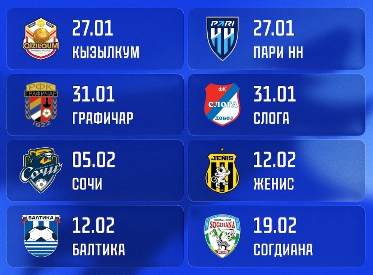 Воронежский футбольный клуб «Факел» обнародовал график контрольных матчей на текущих учебно-тренировочных сборах в турецком Белеке. Всего команда проведет восемь товарищеских встреч с различными соперниками. В числе запланированных спаррингов – матчи с тремя клубами Российской Премьер-Лиги: калининградской «Балтикой», нижегородским «Пари НН» и ФК «Сочи». Также в календарь вошли игры с командами «Кызылкум» и «Согдиана» из Узбекистана, «Графичар» и «Слога» из Сербии, «Женис» из Казахстана. Значительная часть игр пройдет в сжатые сроки: шесть из восьми поединков будут сыграны в течение трех дней, по два матча в день.