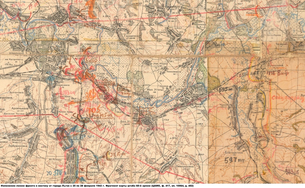 46. ЦАМО Фонд 417 Опись10564 Дело444. Рабочая карта штаба армии за период с 14 по 19 февраля 1943 г.