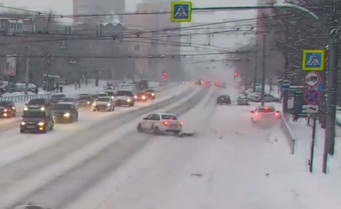 ДТП с участием такси случилось 22 января на перекрестке улиц Воровского и Сони Кривой. Водитель «Гранты» пытался развернуться, когда в него врезался ехавший прямо кроссовер. От удара тот отбросило на забор, но ограждение выдержало удар — машину отбросило и развернуло на дороге.