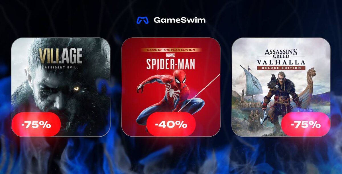 до 05.02.2026 ✌ Увлекательные приключения по отличным ценам! Resident Evil Village 4896₽ 1224₽ Мрачный survival-хоррор с напряжённой атмосферой, жуткими врагами и кинематографичным сюжетом, который держит в напряжении до самого финала. Marvel’s Spider-Man 2983₽ 1790₽ Зрелищный экшен о Человеке-пауке с динамичными боями, полётами по Нью-Йорку и всеми сюжетными дополнениями в одном издании. Assassin's Creed Valhalla Deluxe 4204₽ 1051₽ Эпичное приключение в эпохе викингов с масштабным открытым миром, сражениями и бонусным контентом Deluxe-издания. Купить игру 👉 gameswim.ru