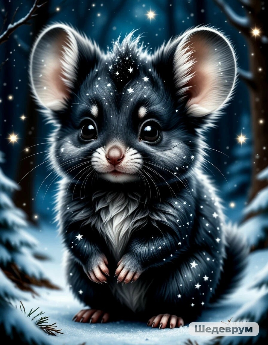 Ну не может на самом деле в тайге водиться такое нелепое существо! Мордочка круглая, посередине – рыло, как у кабанчика, глаза – чёрные бусинки, ушки маленькие, мохнатые, а шерсть как есть звёздное небо, только пушистое.