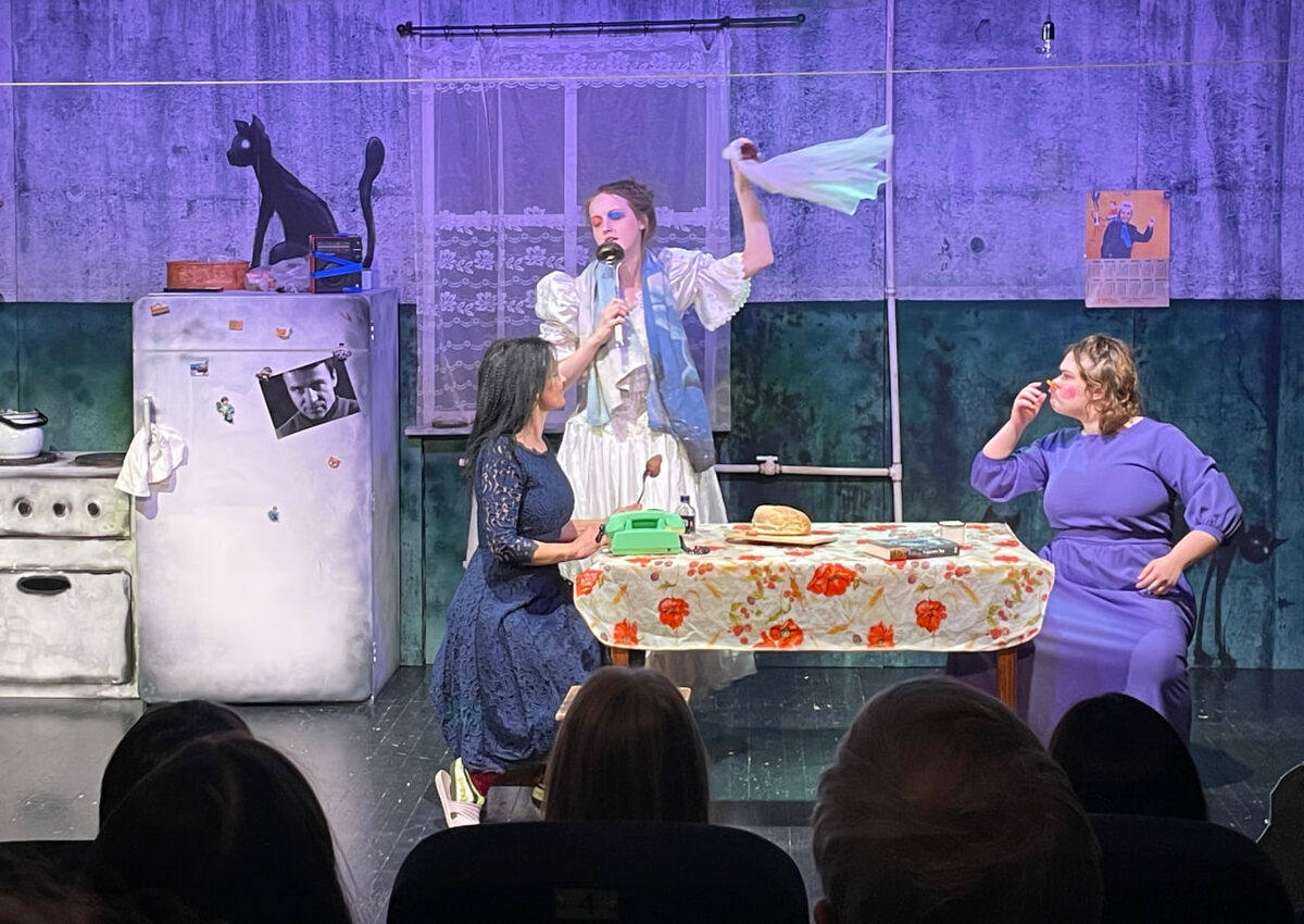 Жили-были Три Грации и по ночам они рассказывали друг другу сказки про принцев и принцесс, проецируя свои судьбы на несчастных королевских особ. Странно, что звали девушек не Вера, Надежда Любовь, а Ирина, Маша и Нина. Хотя Надежда тоже была, но позже… и лежала она на дне сказочного аквариума… или банки. Ждала своего часа, когда принц вытащит её. Таким случился и прекрасно существует в репертуаре Учебного театра Новосибирского государственного театрального института студенческий спектакль «Три девушки. Настоящие сказки». Авторы историй будто и вправду сами героини, даже кажется, что они каждый раз придумывают новые сюжеты, которые очень похоже на автофикшн ― сидели вечерком обитательницы коммуналки и, чтобы разукрасить серость жизни, рассказывали друг другу небылицы. Например, про принца, у которого вместо головы был хлеб. И когда он думал, из него сыпались крошки. А мама-королева говорила, что крошки ― это мысли, а мысли нельзя выбрасывать. И поэтому в их дворце завелись голуби-филосо