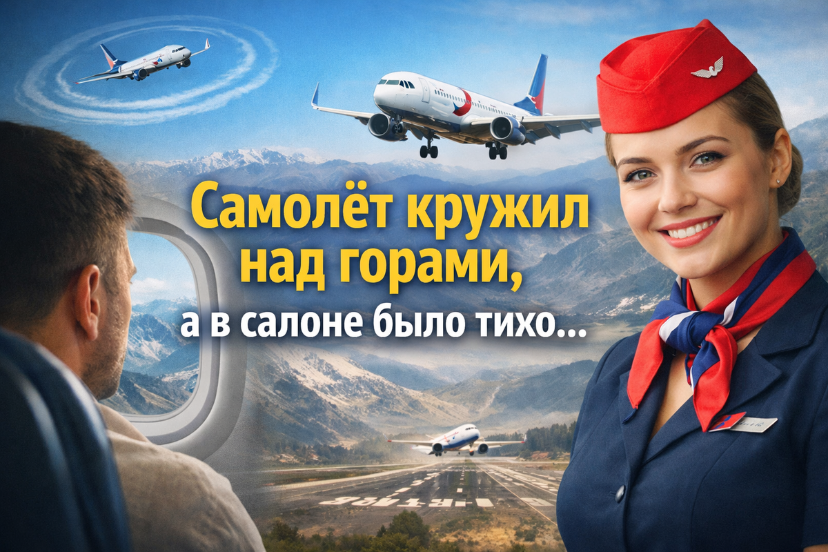 Когда стало понятно, что самолёт начал кружить над горами 🏔️, появилось ощущение ожидания. Не страха, а именно паузы — будто все притихли и просто ждали.