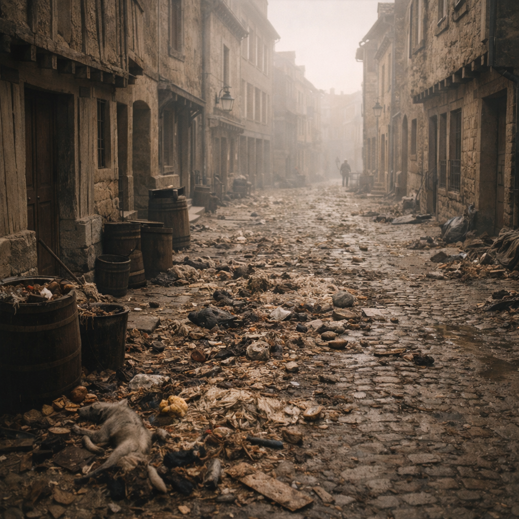 Современный город почти не пахнет. Точнее, он пахнет слабо и фоново. Выхлопы, еда, иногда мусор, иногда парфюм. Запахи есть, но они не управляют поведением людей. В прошлом всё было иначе. Город пах постоянно и сильно. Запах был таким же ориентиром, как звук колоколов или очертания улиц. По нему понимали, где ты находишься, чем живёт район и чего стоит опасаться. Запахи не были «деталью среды». Они были её основой. Городская улица прошлого не разделяла функции. Там же жили, торговали, работали и избавлялись от отходов. Всё это имело запах. Мясные лавки, кожевенные мастерские, открытые сточные канавы, кони, дым от очагов, гниющая органика. Всё смешивалось в плотный фон, к которому жители привыкали с детства. То, что современному человеку показалось бы невыносимым, тогда воспринималось как нормальный городской воздух. Запахи чётко делили город на зоны. Районы ремесленников пахли иначе, чем кварталы знати. Бедные районы отличались не только внешне, но и по воздуху. Чистота ассоциировалас