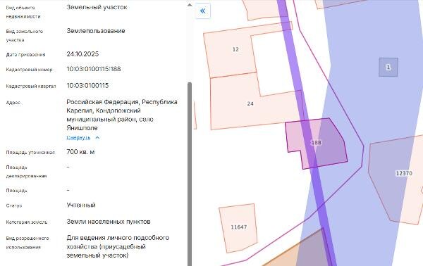 Название: Продажа земельного участка из земель населенных пунктов, имеющего кадастровый номер 10:03:0100115:188, площадью 700 кв.м