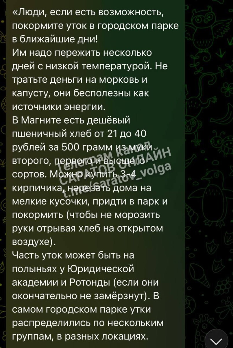 !!!!! Подумайте, прежде чем кормить уток хлебом. Вот к чему это может привести: https://clck.ru/3RRrm4 Не нужно кормить животных и птиц человеческой пищей. Это может их погубить! ▫️САРАТОВ ОНЛАЙН ▪️ЭНГЕЛЬС ОНЛАЙН 🇷🇺 Мы в мессенджере MAX