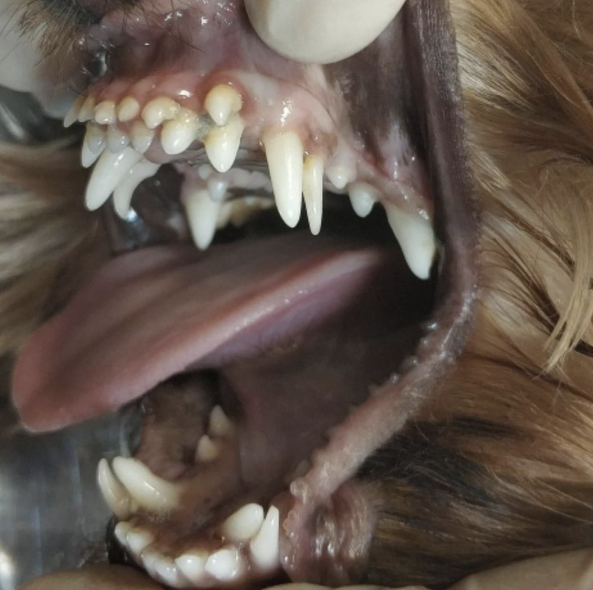 Из-за недостатка пространства для роста, постоянные зубы прорезаются вне зубного ряда (дистопия), не прорезываются (ретенция) либо не вырастают из-за отсутствия зачатка.⠀Ложная полиодонтия или персистирующие временные зубы-выражается в форме сохранения временных( молочных) зубов у животных, при росте постоянных— самая частая патология, встречающаяся у карликовых пород собак. Такие зубы способны вызывать нарушение окклюзии( прикуса) и из за скученности способствуют развитию периодонтита.