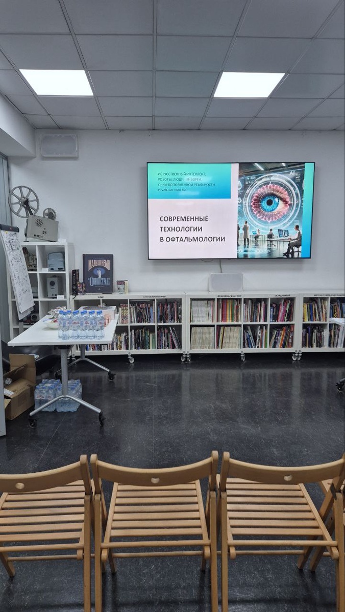 " Рассказывала о новых прорывах в офтальмологии, использовании ИИ, очков дополненной реальности во время операций, о роботизированных технологиях, о людях киборгах. Также о прогрессе в контактой коррекции, как изменялсь и совершенствовались контактные линзы. Очень интересная тема 🔥🔥 Моё выступление появится на сайте библиотеки и на YouTube. Библиотека очень классная, современная, со множеством разных залов и редких уникальных книг. Благодарю за приглашение мою приятельницу, заведующую отделом Media Lab ❤️ #технологии #ии #офтальмология #медицина