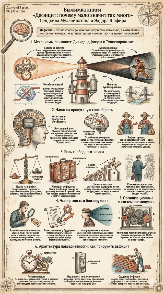 Прочитал книгу "Дефицит. Почему слишком мало значит так много" и нашел в ней целый ряд занимательных идей и примеров. Рекомендую ✌️ А выше прикрепил выжимку основных моментов книги в формате наглядной инфографики. Как вам? 🔥 — Присоединяйтесь к моему Telegram-каналу- там много практичных постов по инфомаркетингу. Дмитрий.