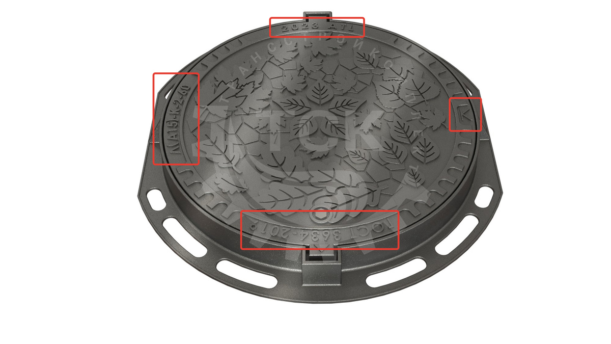 Согласно разделу 5.4 ГОСТ 3634-2019, маркировка должна наноситься на наружную поверхность крышки люка и включать:
