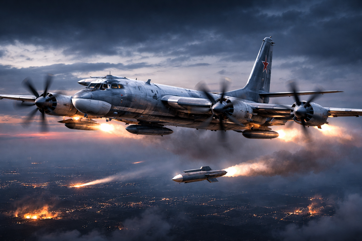 Сегодня ночью, по сообщению Минобороны РФ, в ответ на атаки по гражданским объектам на территории России был нанесён массированный удар высокоточным оружием большой дальности (наземного и воздушного базирования) и ударными БПЛА — по заводу, выпускающему дальние беспилотники, и по объектам энергетики, работающим в интересах ВПК Украины. Ту-95 — легендарная серия стратегических бомбардировщиков, стоящая на вооружении с 1950-х. А Ту-95МС — более поздняя ракетоносная модификация, заточенная именно под крылатые ракеты. Главное его преимущество не в “стелсе” и не в манёвренности: он ценен тем, что может долго находиться в воздухе и запускать ракеты с безопасных рубежей. Сердце самолёта — турбовинтовые НК-12: это одни из самых мощных серийных турбовинтовых двигателей в мире, с характерными соосными винтами огромного диаметра.