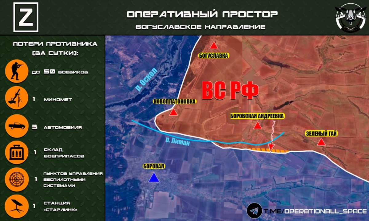 🇷🇺На Богуславском направлении ВС РФ ведут бои на рубеже в районе населённого пункта Боровская Андреевка