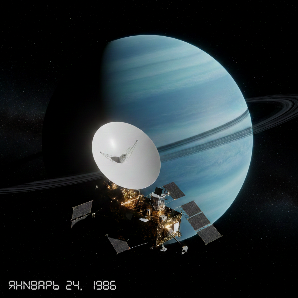 24 января 1986 года вошло в историю как день, когда человечество впервые «поздоровалось» с самой странной планетой Солнечной системы. В этот день космический аппарат НАСА «Вояджер-2» совершил свое историческое сближение с Ураном, пройдя всего в 81 500 километрах от его облачного слоя. До этого момента Уран оставался для астрономов лишь бледным сине-зеленым пятнышком в телескопах. Миссия «Вояджера» превратила это пятно в живой, сложный и пугающе холодный мир. Одинокий странник у цели К моменту прибытия к Урану «Вояджер-2» находился в пути уже более 8 лет. Радиосигналу, несущему первые снимки, требовалось почти 3 часа, чтобы долететь до Земли. Инженеры НАСА совершили невозможное: они дистанционно перепрограммировали компьютер зонда, чтобы тот мог делать четкие снимки при крайне слабом освещении — ведь Солнце на таком расстоянии светит в 360 раз тусклее, чем на Земле. Уран — планета-аномалия. В отличие от всех остальных планет, он «лежит на боку», вращаясь вокруг Солнца, будто катящийс