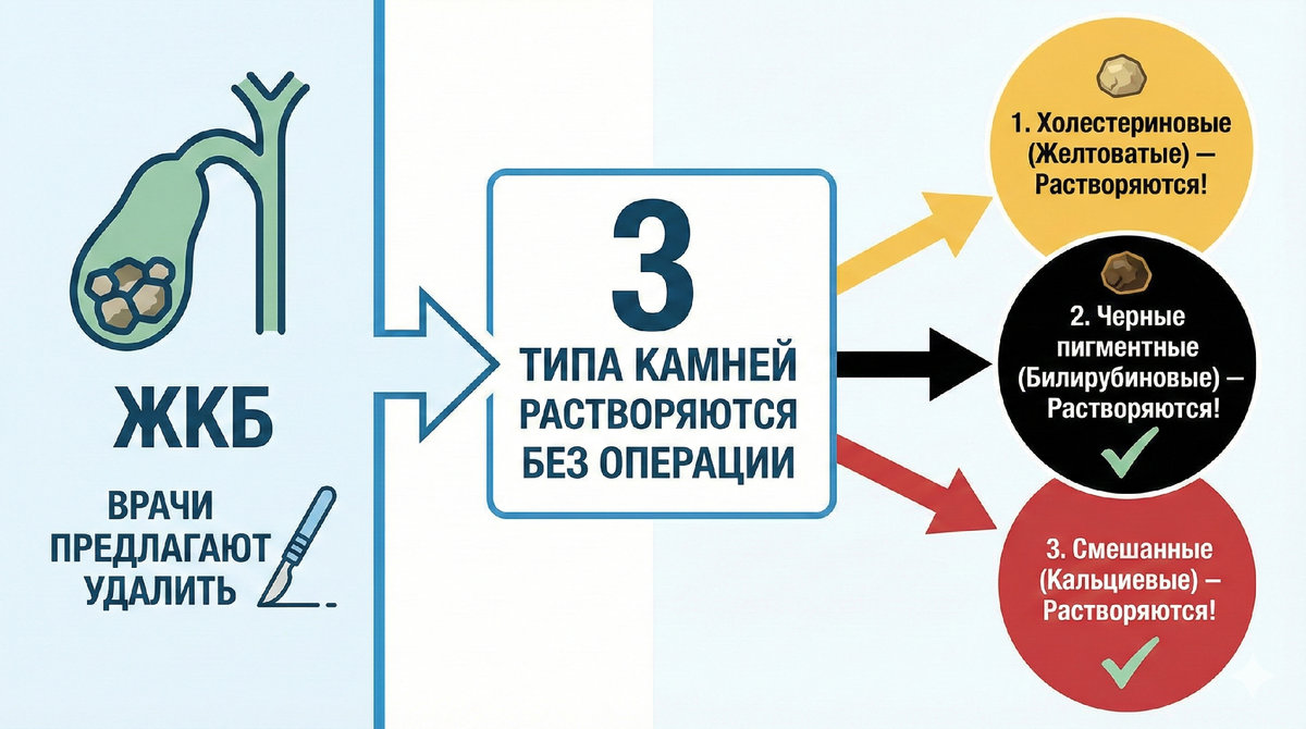 Врачи называют это ЖКБ и предлагают удалить орган — но есть 3 типа камней которые растворяются БЕЗ операции
