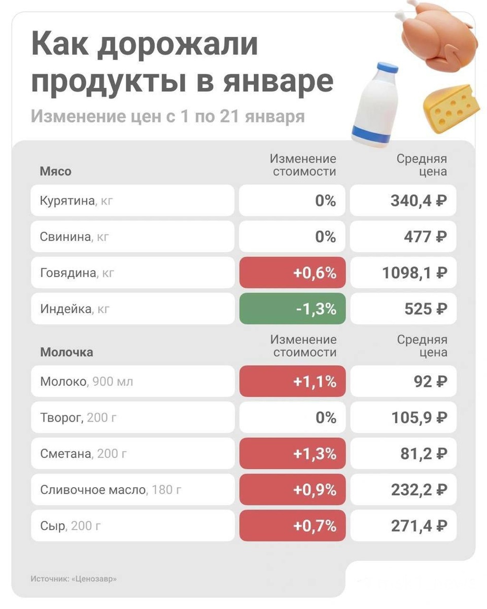 Журналисты выяснили, на сколько действительно подорожали продукты. Лидером в этом году стала водка, — такие данные приводят сервис «Ценозавр». Теперь полулитровая бутылка стоит от 494 до 690 рублей. Курица и свинина в среднем стоят, как и раньше. Говядина подорожала на 0,6% — до 1098 рублей, а индейка подешевела на 1,3% — до 525 рублей за килограмм. На что еще выросли цены — читайте в карточках. А вы заметили подорожание в новом году? Расскажите, на какие продукты? 🤓 — вроде все так же 🔥 — цены растут как не в себя! ⭐️ LPG