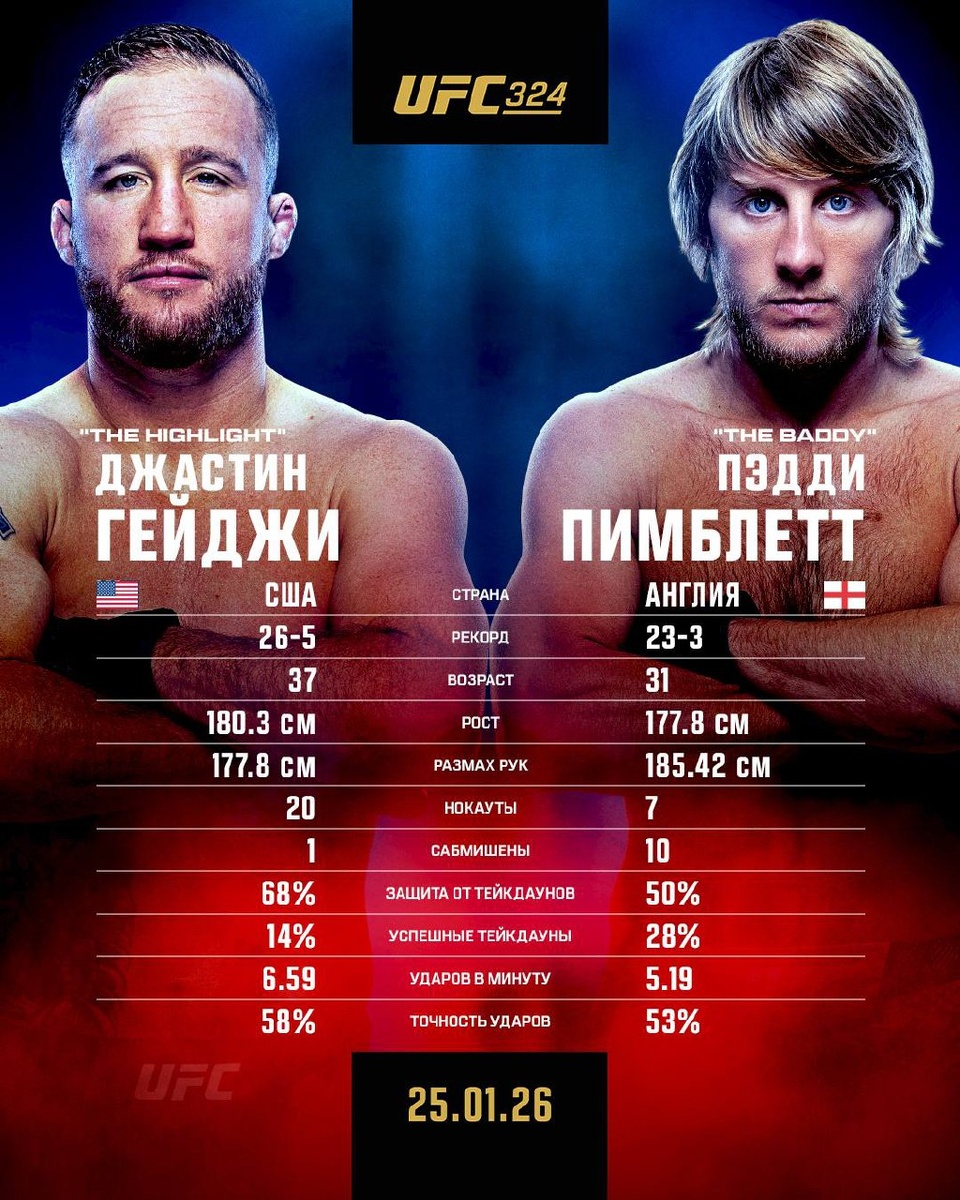 📊 Статистические показатели хэдлайнеров #UFC324 перед боем. На кого ставите?