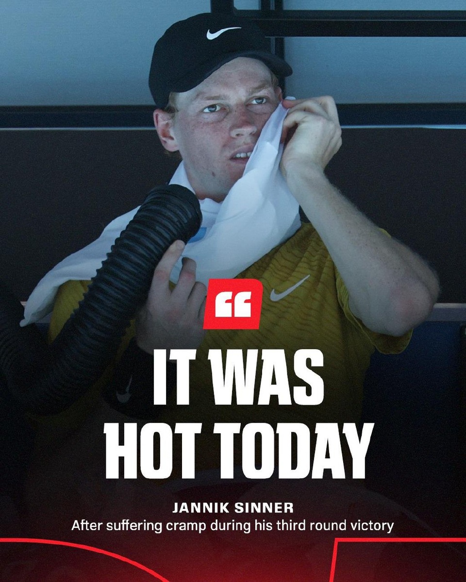 На фото: Янник Синнер после победы в третьем раунде, где он страдал от судорог.