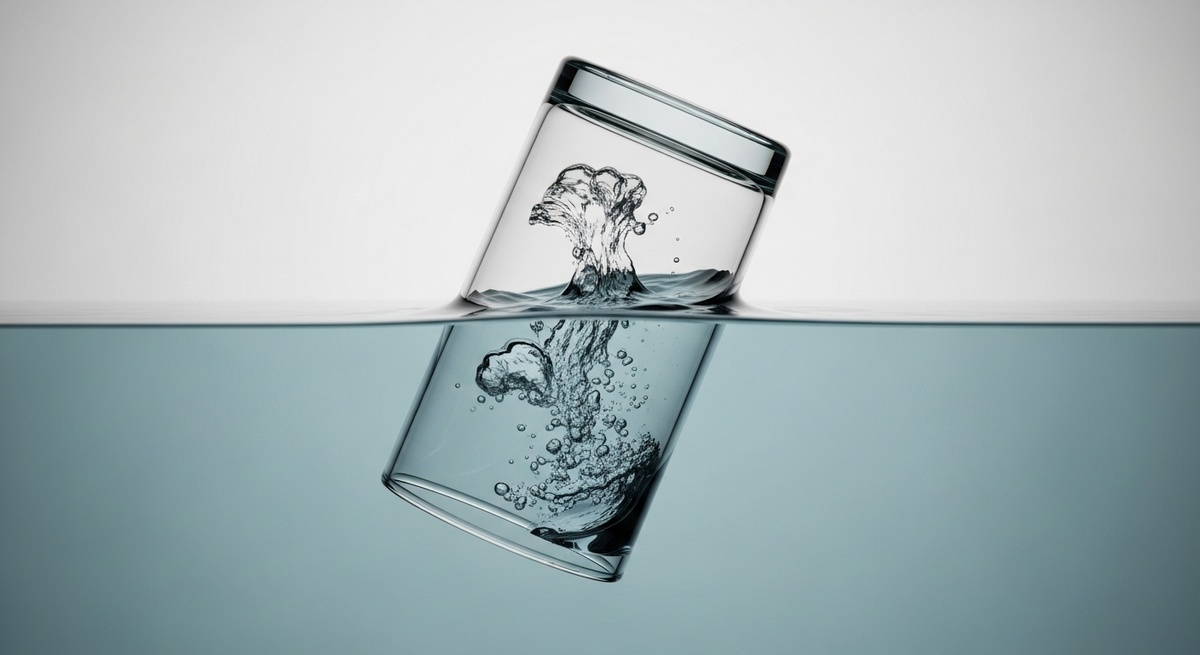 Именно поэтому необходим альтернативный подход с использованием законов гидростатики и давления воздуха. Если стакан просто перевернуть, вся жидкость мгновенно выйдет наружу.