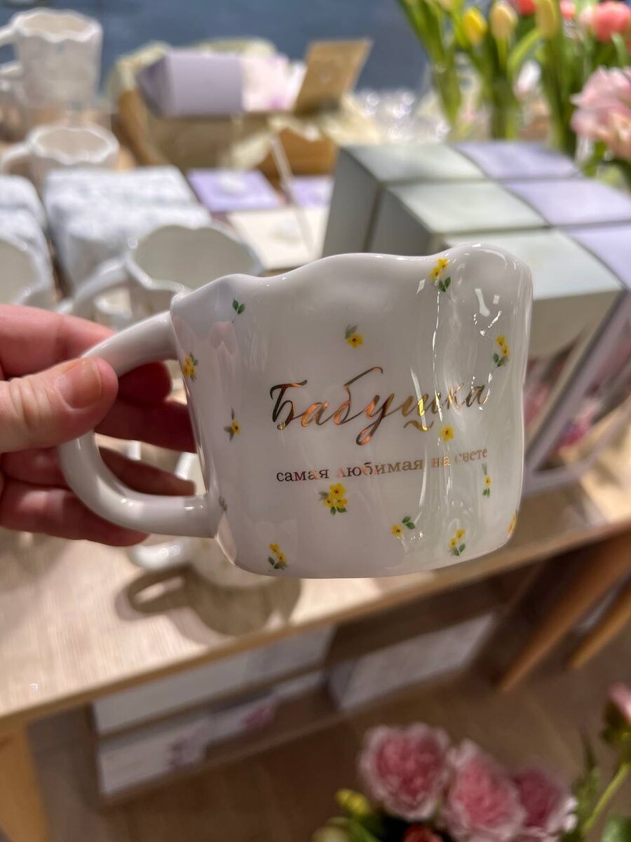 Эта милейшая чашка с надписью «Бабушка» просто обязана быть наполненной лучшим чаем и любовью. Золотистые буквы так и шепчут, что пора звонить любимой бабуле и напрашиваться на пирожки. А цветочки на керамике выглядят так нежно, что из неё даже простая вода покажется эликсиром молодости! ☕️💛
