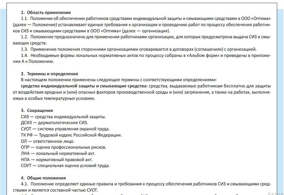 ❗️ ✅ Положение об обеспечении работников средствами индивидуальной защиты и смывающими средствами Положение об обеспечении работников средствами индивидуальной защиты и смывающими средствами — главный документ работодателя, где детально прописано, как осуществляется процесс. Требования к его содержанию установлены разд. XVI «Организация работы по обеспечению работников СИЗ» Правил обеспечения СИЗ. Положение должно включать порядок выявления потребности работников в СИЗ; порядок выдачи; правила эксплуатации (использования); порядок проведения входного контроля; правила хранения и ухода (обслуживания) и др. разделы. 👉 Скачать пример Положения об обеспечении работников средствами индивидуальной защиты и смывающими средствами → https://www.profiz.ru/sec/blog/post_18469/