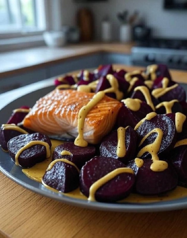 📌 КБЖУ (на порцию): 230 ккал / Б: 25 / Ж: 12 / У: 8 Ингредиенты: • Филе лосося — 150 г • Свёкла — 100 г • Лимонный сок — 1 ч.л. • Горчица — 1 ч.л. • Специи — по вкусу 👨🏻🍳 Приготовление: Запеки свёклу и лосося при 180°C 20 мин, полей смесью лимона и горчицы. ✨ Худеем правильно щ