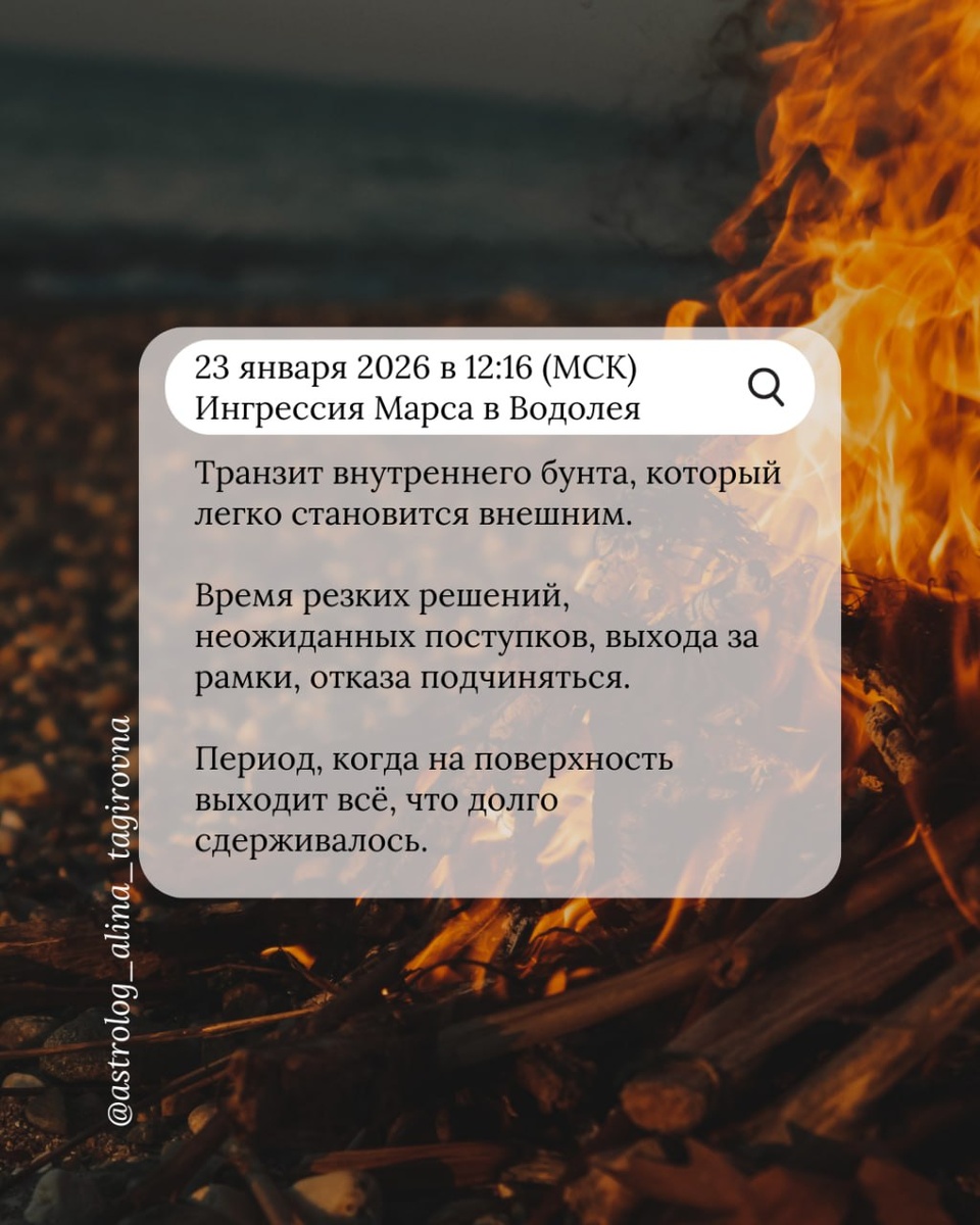 Итак, мои дорогие❤️, 23 января 2026 года в 12:16 по московскому времени Марс вошёл в знак Водолея — и это начало одного из самых нервных