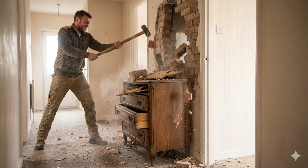 Марина не молчала. Она просто забыла, как дышать. Она стояла в дверях спальни, кутаясь в вязаный кардиган, и смотрела на кучу битого кирпича, которая еще полчаса назад была уютной стеной, отделявшей её маленький мир от входной двери. Но смотрела она не на стену. Её взгляд, полный того особого, влажного ужаса, который умеют генерировать только женщины-Раки, был прикован к углу. Там, под обломками штукатурки, торчала ножка старого комода. Комода её бабушки. Комода, который пережил три переезда, в котором хранились её детские фотоальбомы и тот самый сервиз «Мадонна».