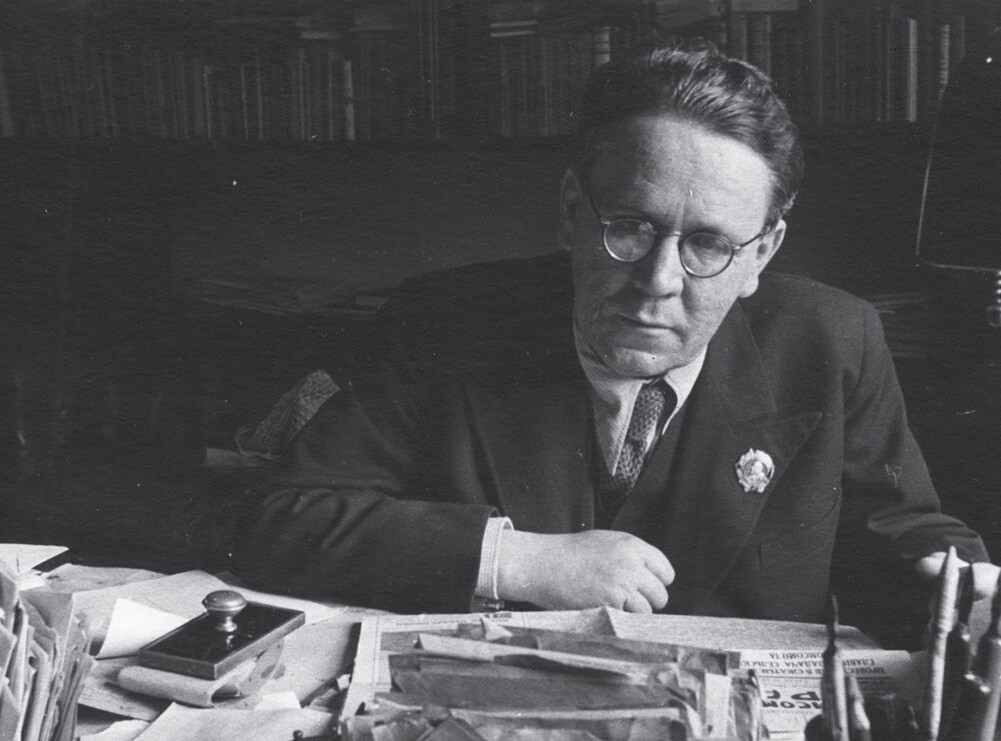 "Жук упал и встать не может. Ждёт он, кто ему поможет", "какой рассеянный с улицы Бассейной!", "Тили-тили, Тили-тили, Тили-тили, тили-бом! Загорелся кошкин дом". Да, это Самуил Маршак (1887–1964) — поэт, автор и множества других детских шедевров. Так же он известен классическими переводами сонетов Шекспира, баллад Роберта Бёрнса и произведений других мировых классиков Сегодня в моей коллекции — книга, которая показывает Маршака с неожиданной стороны: не только как классика, но и как человека, искренне ценившего труд простых людей. На страницах сохранилась печать артели: "Артель Промбытремонт. Гор. Перово, Пролетарская ул., д. 14" — прямое доказательство, что книга ходила по рукам рабочих. А главное — автограф: "Дорогие работники обувной промышленности благодарю Вас за то, что мы не ходим босыми. С. Маршак" Юмор, благодарность и советский дух в одной строке. Маршак умел сказать важное просто и с улыбкой. Несколько фактов о Маршаке, чтобы лучше понять автора автографа 1) Огонь в детстве