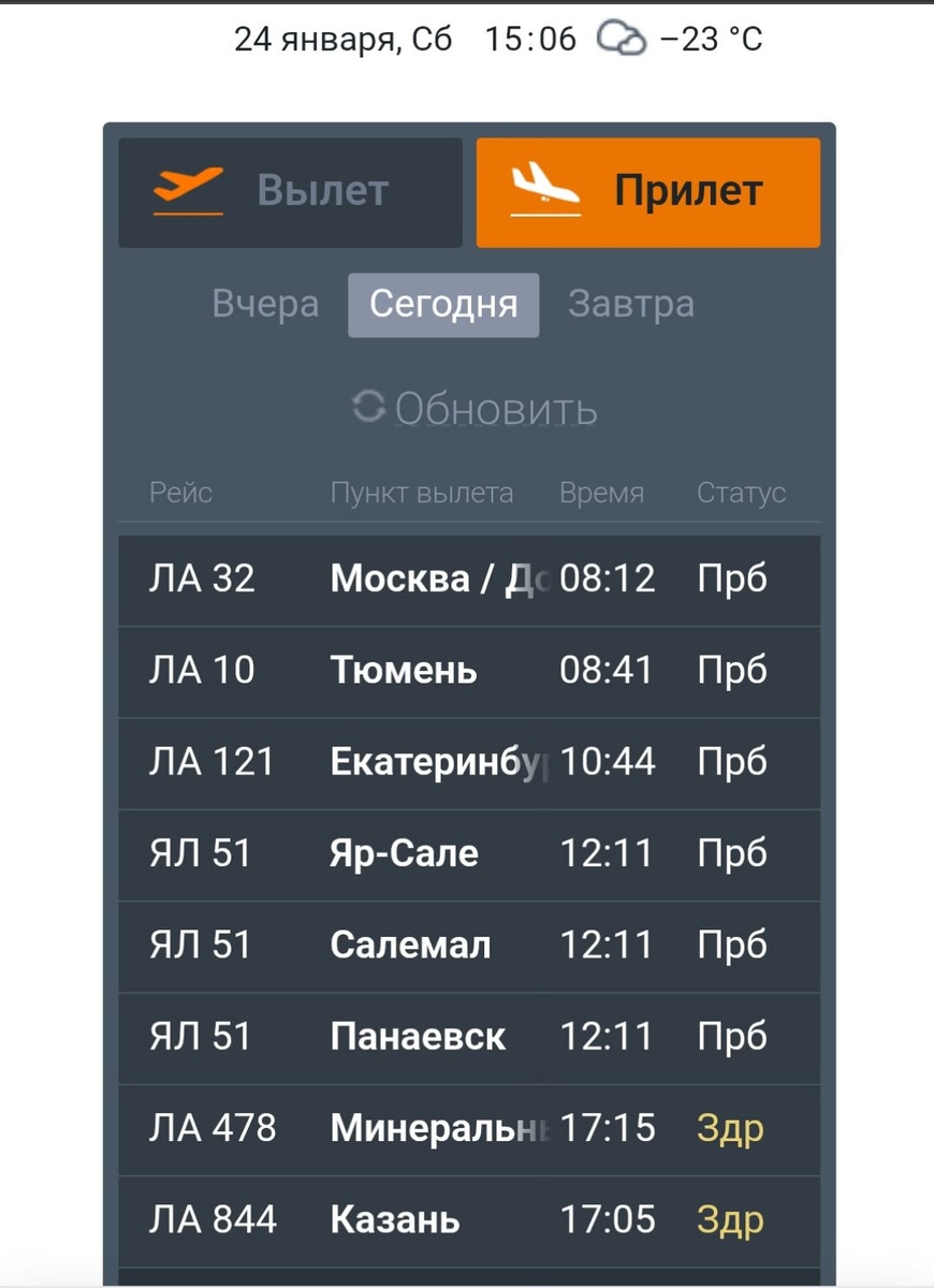 Авиакомпания Ямал Вы что творите? Сегодня 24.01 рейс Минеральные Воды-Салехард должен был вылететь в 08.00 утра по Москве. Сейчас уже 15:10 борт задерживается более чем на 5 часов. Пассажирам ни воду ни еду не предложили, раздали только детям. Вам не стыдно совсем авиакомпания Ямал? Вы только и можете в интернете писать как все хорошо у авиакомпании и какие награды она получает, а по факту не заботитесь о своих пассажирах, нарушая все возможные правила авиаперелёта.