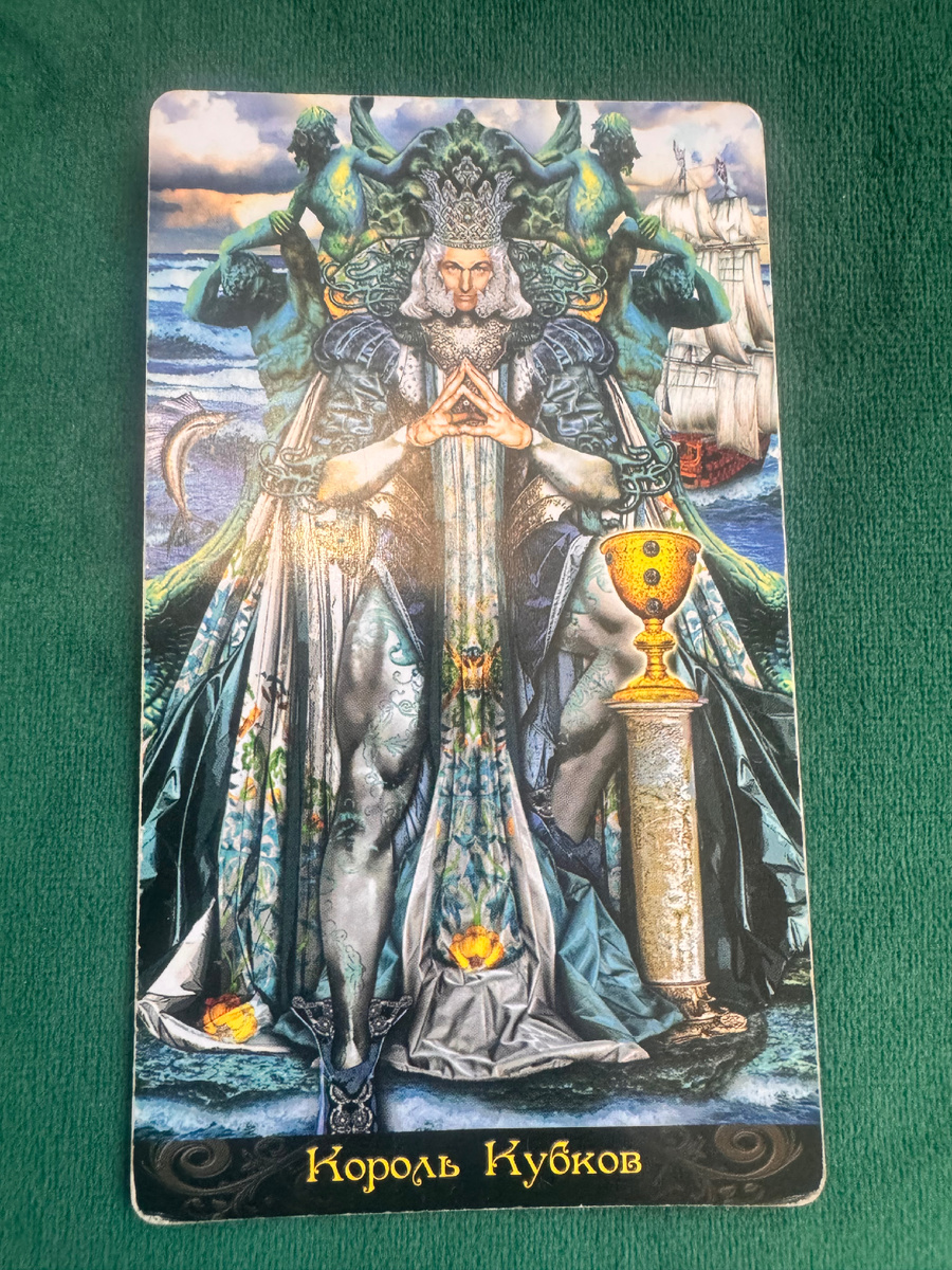 Король Кубков — это сладкий, но коварный плод. Представь себе персик: мягкий, сочный, ароматный, но с той самой косточкой внутри, которую невозможно раскусить. Этот мужчина — эмоциональный гедонист. Он обожает быть в центре женского внимания, его стихия — флирт, легкие намёки, атмосфера влюблённости. Он балагур, душа компании, человек, который умеет сделать так, чтобы каждая женщина почувствовала себя особенной. Но его главная трагедия в том, что он и сам верит в эту игру. Он не просто играет — он живёт в ней.