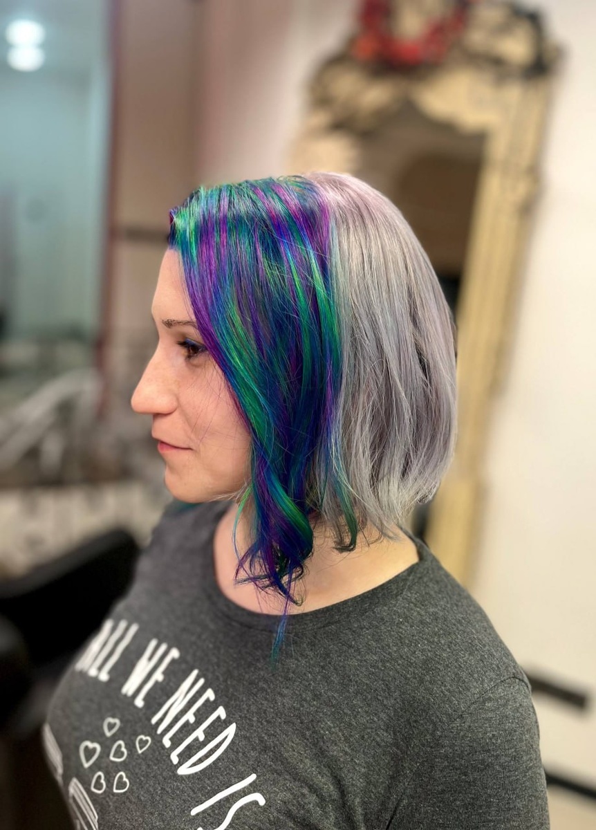 » — любимый миф интернета и любимая тема нашей рубрики #ПутьЦвета 🧙♀️ 🪄 11 ноября стилист Рина сделала для своей постоянной клиентки Елены пепельный блонд с космическим глитчем (фото 1). 🪄 А 26 декабря Лена пришла на обновление (фото 2). Что видим по факту: 1️⃣ Яркие цвета остались на своих местах. Ничего не «потекло», не смешалось и не превратилось в грязь (чем обычно так любят пугать комментаторы под нашими видео в соцсетях😁) Глитч просто стал мягче, как и должен со временем) К слову, на смешение цветов или его отсутствие также влияет домашний уход клиента, поэтому важно соблюдать рекомендации мастера. 2️⃣ Блонд как был пепельным, так и остался. Отрос только корень, ну и базово необходимо своевременное тонирование, чтобы заполнялись пустоты и волосы выглядели роскошными и гладкими✨ Кстати 👀 У стилиста Рины есть 2 окна — в понедельник и вторник. Влезут даже сложные окрашивания в техниках и многоцвете. Она — наш нежный нефорский цветочек 🌸 так что с ней будет комфортно, прик