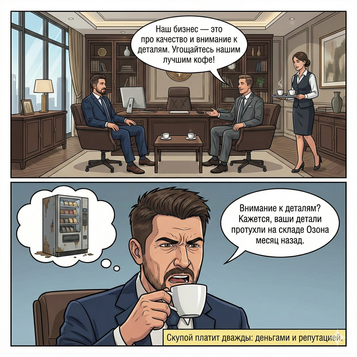 Привет! Я Кирилл, и я 12 лет строю kofcheg.ru — экосистему для кофейного бизнеса. Недавно в бизнес-клубе у нас зашел спор с коллегами-предпринимателями. Я искал боли и запросы собственников офисов, чтобы сделать крутой сервис, а мне в ответ: «Кирилл, брось, мы всё на Озоне покупаем, там дешевле». Признаюсь честно: как у человека, который 12 лет топит за качество и систему, у меня от таких советов «пукан рвет». И дело не в эмоциях, а в сухой математике и стандартах, которые на маркетплейсах просто не выживают. Давайте разберем по косточкам, почему «дешевый кофе из интернета» — это ловушка. Математика «шлака» Многие думают, что на маркетплейсах сидят благотворители. Давайте посчитаем. Самое бюджетное зеленое зерно (бразильская коммерция, которую можно пить без содрогания) стоит сейчас около 900 рублей за кг. При обжарке кофе теряет в весе (ужарка) до 20%. То есть себестоимость только самого продукта в пачке уже подлетает к 1100 рублям. Добавляем сюда: Итог: честная цена нормального кофе