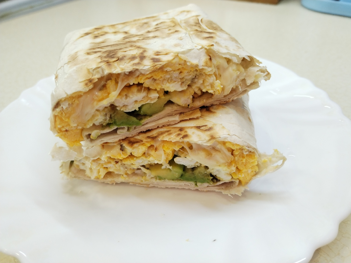 2. На прямоугольный лаваш выложить сначала сыр, затем яйца и авокадо. Соль и перец по вкусу.