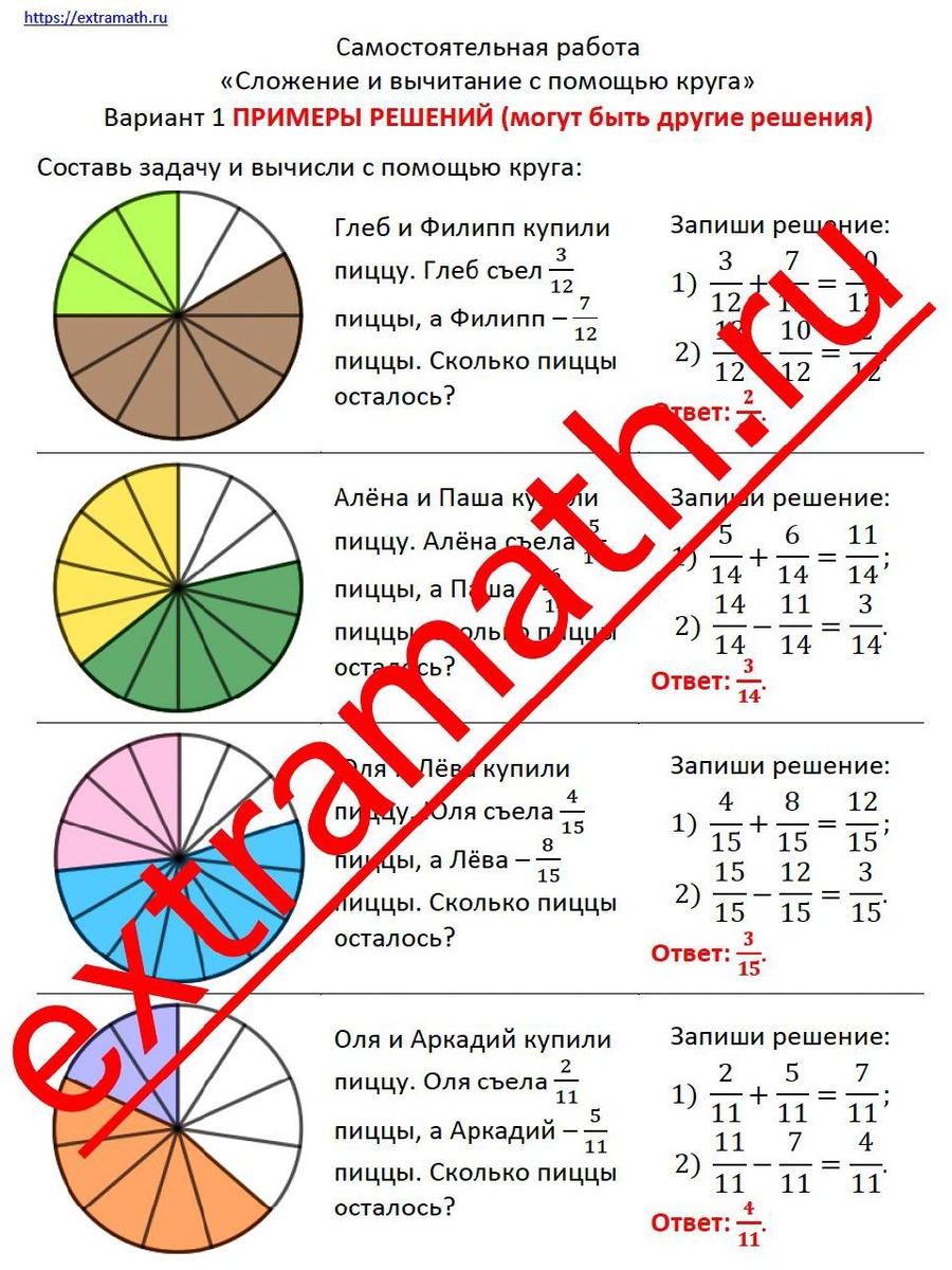 ). Кто брал, скачайте бесплатно по той же самой ссылке. 🆗5 класс Опорные конспекты + Самостоятельные работы + Контрольная работа "Сложение и вычитание дробей с одинаковыми знаменателями" 📥Скачать: extramath.ru/p/18243 Содержит: 🔹4 опорных конспекта к п.29-32 учебника "Математика 5" Виленкин 2023; 🔹5 самостоятельных работ с ответами; 🔹 контрольную работу по теме в 6 вариантах с полным решением. Материал скомпонован в три PDF файла: 🔹Файл учителю 11 страниц. 🔹Файл репетитору 12 страниц. 🔹Файл ответы 19 страниц. Материал предназначен для изучения §5 "Обыкновенные дроби": 29. Сложение и вычитание дробей с одинаковыми знаменателями. 30. Деление натуральных чисел и дроби. 31. Смешанные числа. 32. Сложение и вычитание смешанных чисел.
