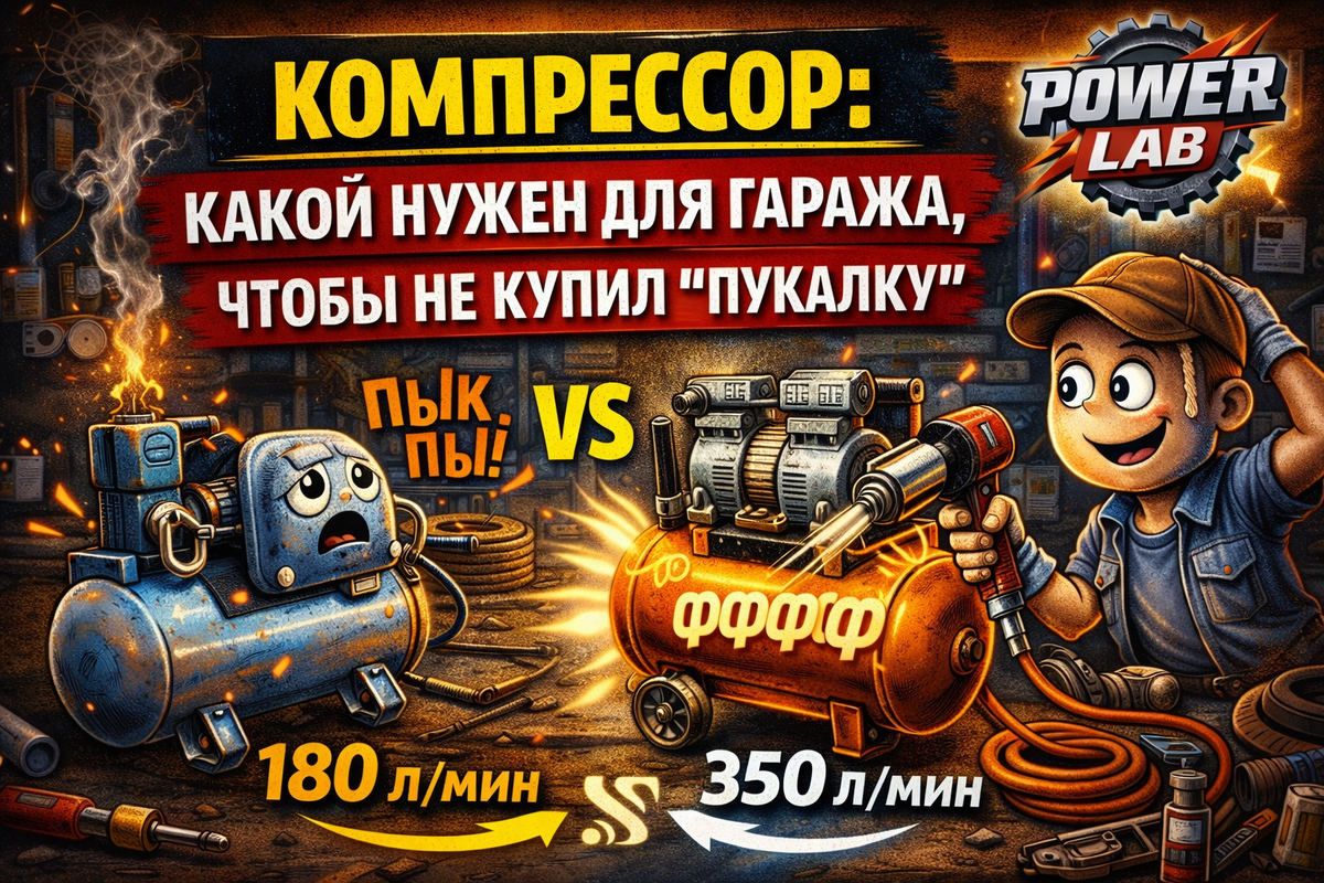- Компрессор: какой нужен для гаража, чтобы не купил “пукалку” — решают л/мин на выходе и запас по расходу.