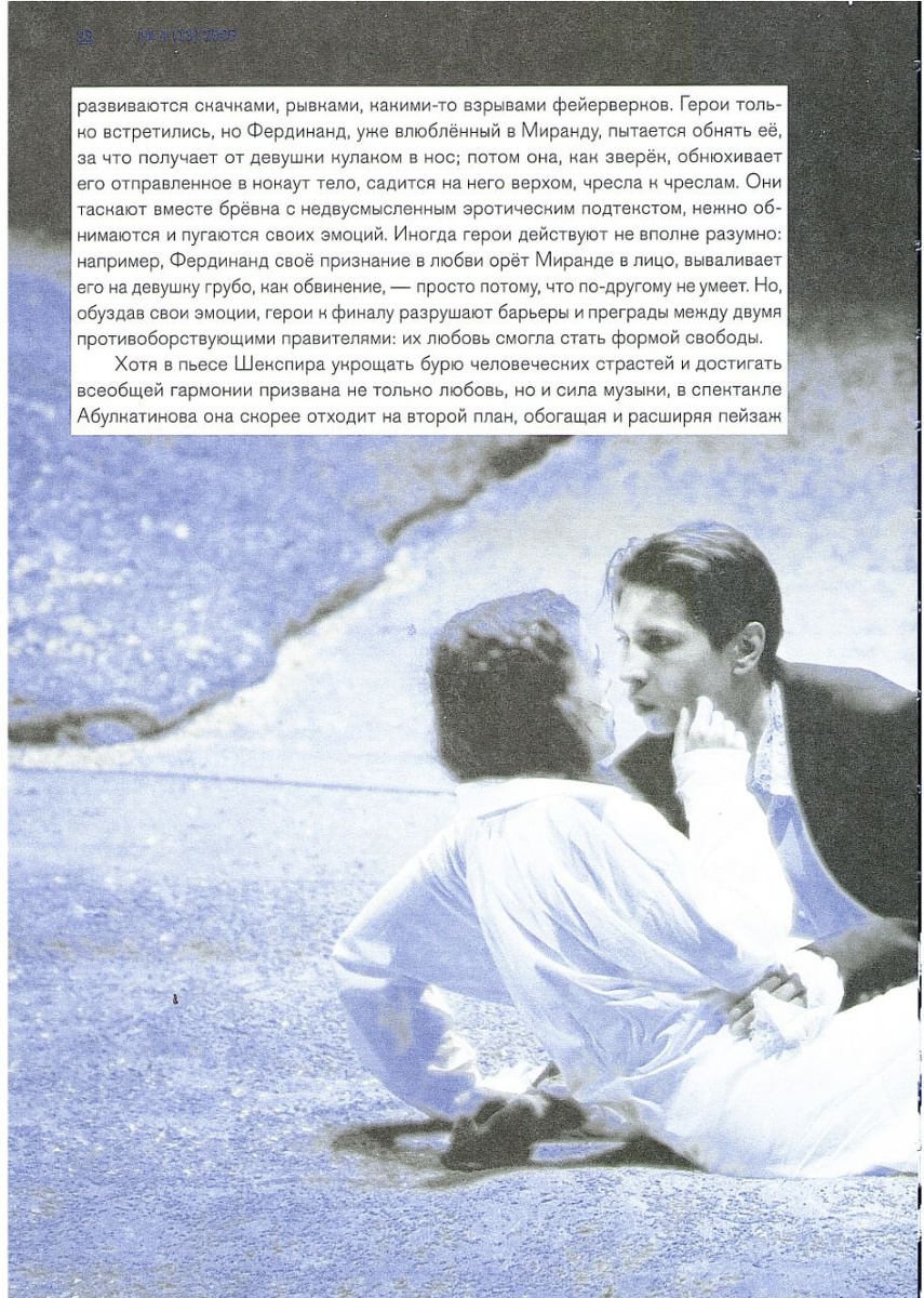 В конце года вышел новый номер федерального издания «Театральный журнал». Обозреватель журнала Анастасия Воронкова побывала в СамАрте на «Буре». Вот какими она увидела Фердинанда и Миранду: «…Молодые люди играют бушующий гормональный коктейль первой любви, какой она ощущается в подростковом возрасте. Новый опыт чувствования наэлектризовывает каждую клеточку тел героев, и чувства их развиваются скачками, рывками, какими-то взрывами фейерверков». Приходите за яркими эмоциями и ответами на вечные вопросы о прощении, любви и предательстве! 🟥 «Буря» | 16+ 4 февраля | 18:00 Купить билеты